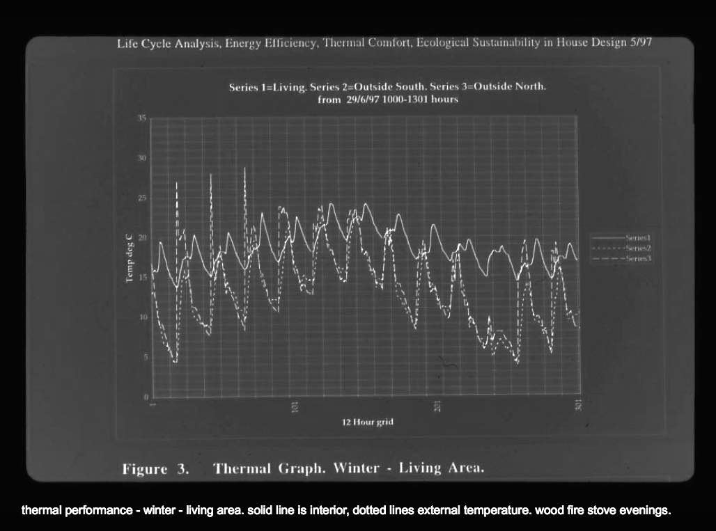Systematic thermal monitoring recorded internal temperatures on a hot summer day up to 12º cooler than outside at 26ºC inside and 38ºC outside. On a cold winter morning the internal temperature is up to 10º warmer than outside at 14ºC inside and 4ºC outside. Both with no artificial heating or coolingA full embodied and utilisation energy audit was conducted as a university research project. A “typical” Australian home emits in the range 15 – 23 tonnesCO2e/annum. Four Horizons is in the range 20% - 30% of a "typical" Australian house.